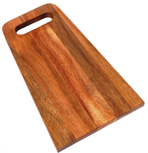 Every professional chef needs a good cutting board, whether you are in the food business or simply a home cook who enjoys working with food. Why not make it special and personalize it? This multi-purpose solid acacia hardwood board has a gripper handle which makes it easy to hold while you transfer cut veggies or meat to a pan, pot, or another container.