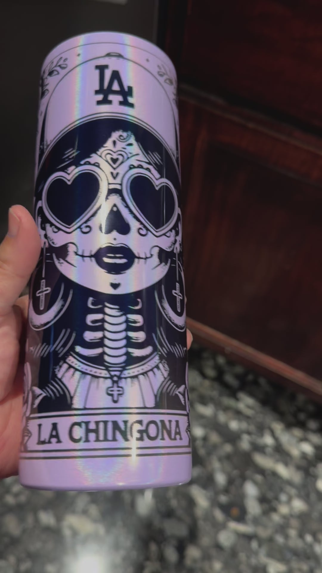 20 oz Skinny Lilac Shimmer Tumbler is crafted from durable, high-quality metal materials designed for longevity. Its slim shape fits perfectly in your car cup holder, and it ships from California.