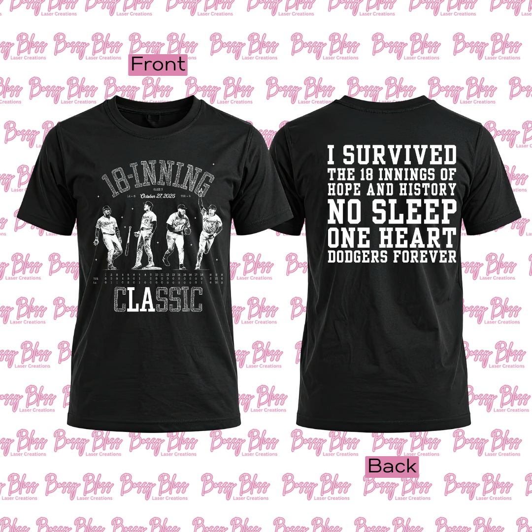 For the true fans who stayed until the very last out. This Los Angeles Dodgers “I Survived an 18-Inning World Series Game 3” T-Shirt celebrates one of the most unforgettable marathon games in baseball history. If you watched it, lived it, and survived it—this shirt is for you.