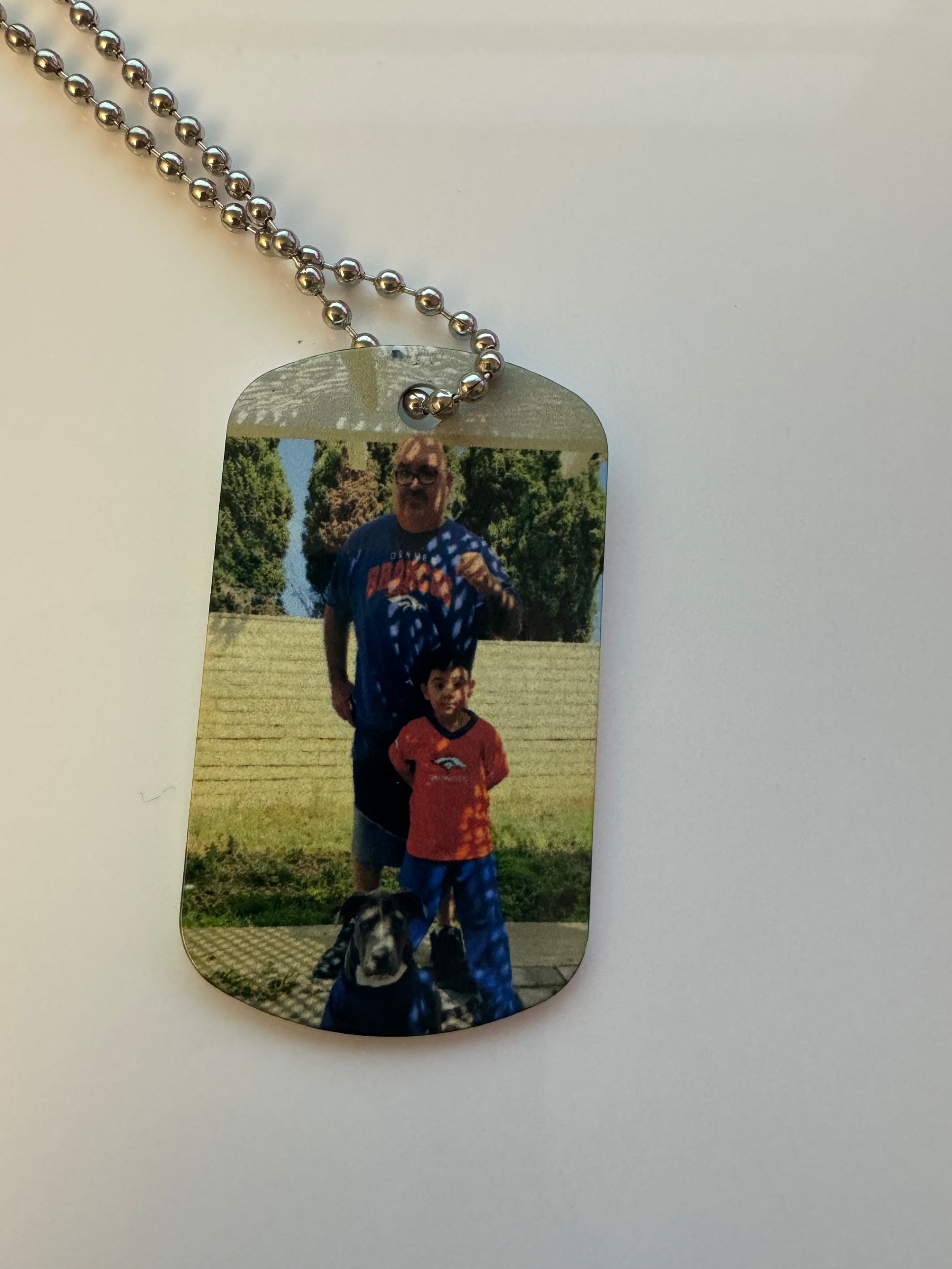 Stainless steel dog tags are a unique way to keep your favorite photos close at all time. Double sided. Must provide high resolution photo.