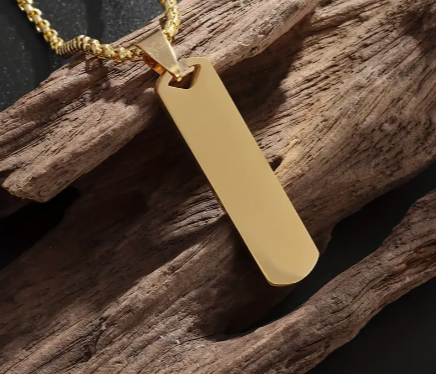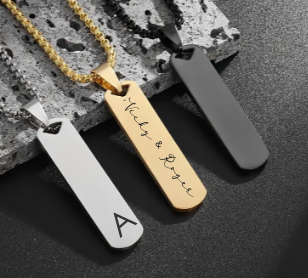 Simple Stainless Steel Square Bar Pendant Necklace For Men And Women: Ideal choice for Gifts. Can be personalized with 1 to 10 characters. Length: 23.6 Inches (necklace), 1.77 Inches x 0.39 inches (bar) Plating: Other |