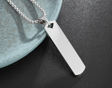 Simple Stainless Steel Square Bar Pendant Necklace For Men And Women: Ideal choice for Gifts. Can be personalized with 1 to 10 characters. Length: 23.6 Inches (necklace), 1.77 Inches x 0.39 inches (bar) Plating: Other |