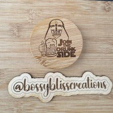 One wood bottle opener engraved with Join the drunk side. This is a magnetic bottle opener. Other options available along with personalization.